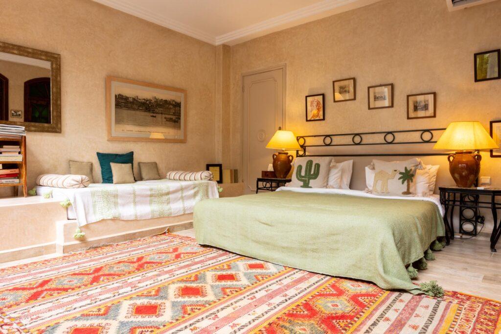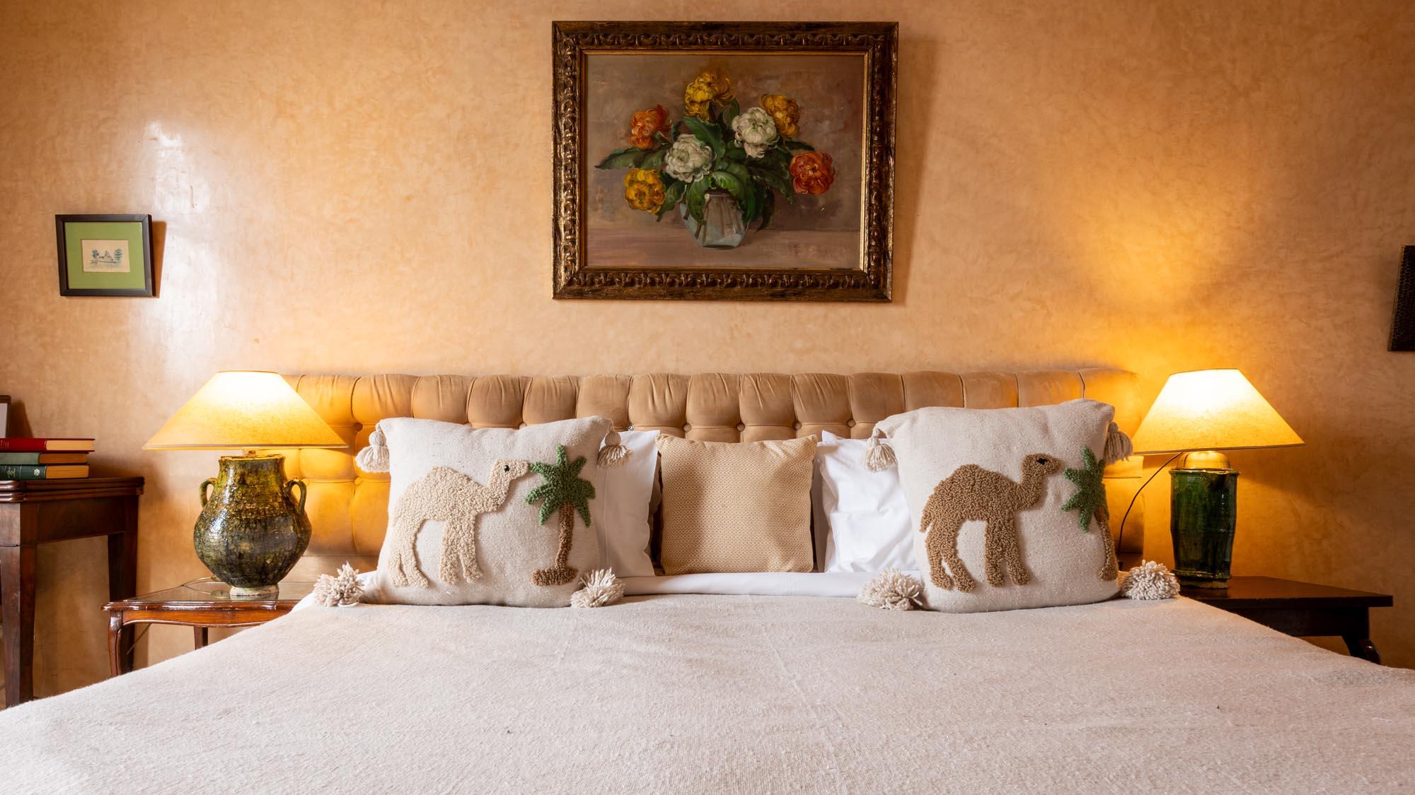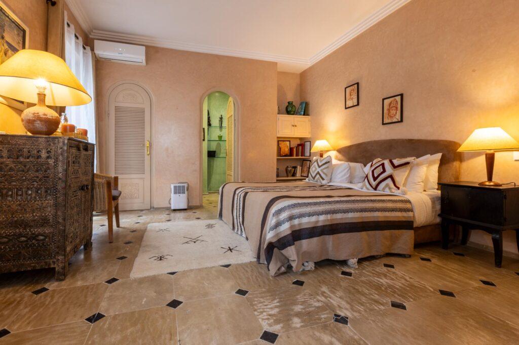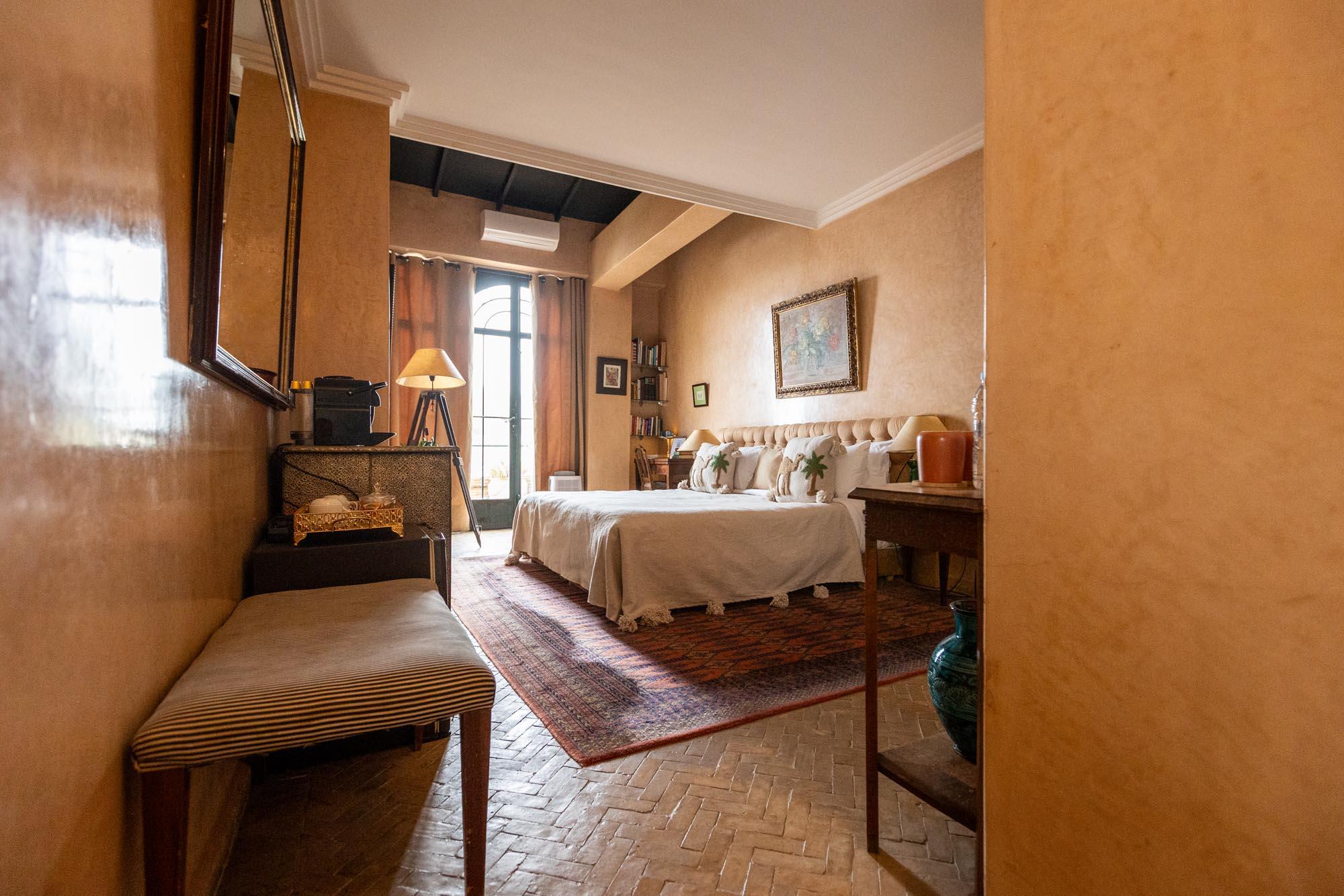 On the second floor of the guesthouse, this warm 30m2 suite opens onto a private terrace offering a stunning view of the bay. The bathroom is fitted with a bath and the suite also offers reversible air conditioning and a safe.